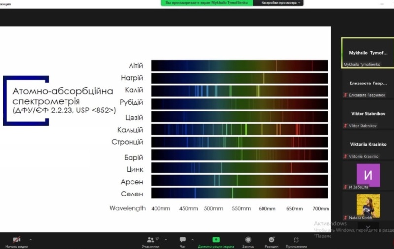 Також студенти удосконалили знання про атомно-адсорбційну спектрометрію, визначили її суть та мету, дослідили використання різних методик. Розглянули більш специфічний метод аналізу – атомно-емісійну спектрометрію, яку використовують у новітньому методі ISPOS – спектроскопії з індуктивно-зв'язаною базою.
