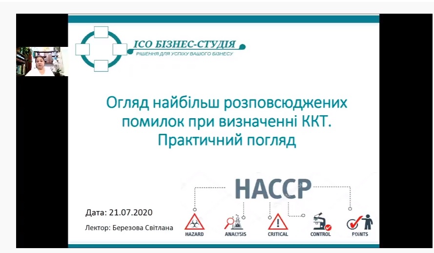 Для того, щоб допомогти харчовим підприємствам провести цю роботу, фахівцями ТОВ «ІСО БІЗНЕС-СТУДІЯ», партнера кафедри експертизи харчових продуктів, був розроблений вебінар «Огляд найбільш розповсюджених помилок при визначенні ККТ. Практичний погляд», який відбувся 21 липня 2020 року.