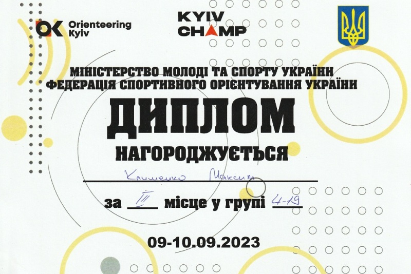 Здобувач групи БТ-2-1 факультету біотехнології т екологічного контролю Максим Клименко продовжує підкорювати спортивні висоти. Цього разу він посів ІІІ місце в особистому заліку по групі Ч19 за сумою балів на спринтерських дистанціях відкритого чемпіонату м. Києва зі спортивного орієнтування (бігом) на спринтерських дистанціях, присвяченого Дню фізичної культури і спорту.