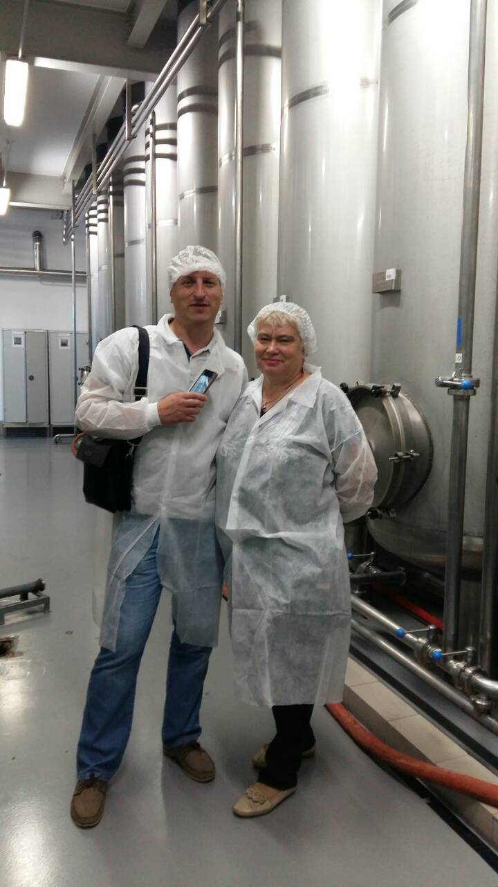 Ознайомитись із відомим підприємством викладачів запросили випускники кафедри 2001 року випуску. Завідувач виробництва Олександр Іванусенко, головний технолог Валерій Шевчук і помічник головного технолога Олена Іванусенко гостинно познайомили з історією підприємства, традиціями виробництва своїх напоїв.