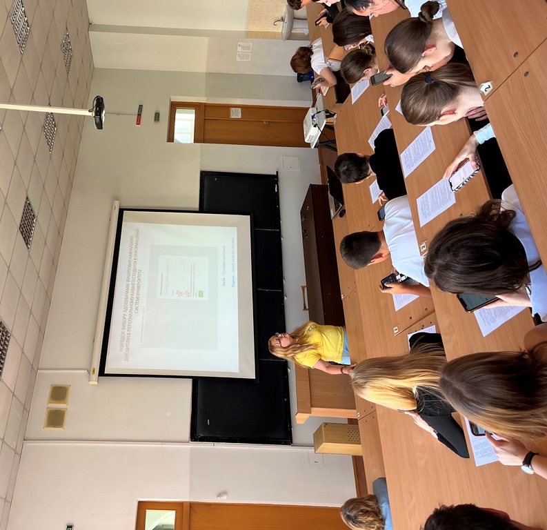 Заступниця директорки Олена Супрун-Крестова акцентувала увагу першокурсників на процедурі здійснення вибору дисциплін із загальноуніверситетського каталогу для вивчення у наступному навчальному семестрі. А також провела тестове навчання першачків з питань користування власним електронних кабінетом, який буде корисним інструментом і помічником студентам у навчанні.