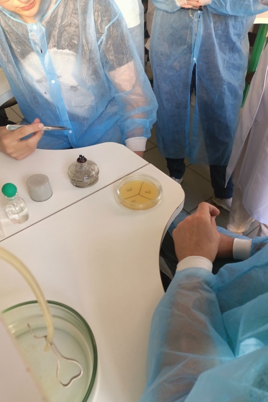 На наступному майстер-класі розглядали тему вивчення мікрофлори людини. За допомогою різних біотехнологічних прийомів можна визначити цікаві, а й іноді моторошні факти з нашого буденного життя. Тетяна Белемець розповідала слухачам про індивідуальність мікрофлори кожної людини, а також про методи її визначення. Під час пари гості дізналися багато нового та вперше спробувати виконати посів дослідних зразків, у вигляді відбитку пальців, волосся та змиву із зубів. Крім того, додатково викладачка знову розповіла про мікроскопію різноманітних препаратів.