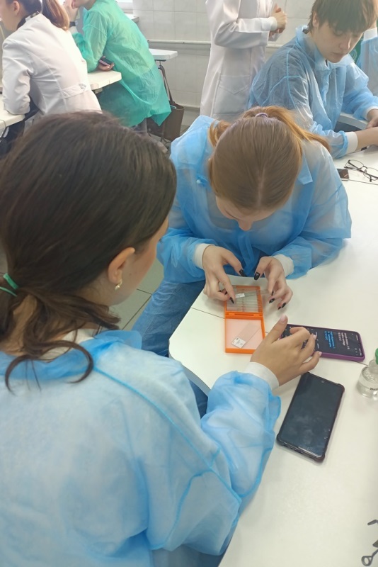 У перший день вивчали різноманітні біологічні препарати під мікроскопом. Одна з викладачів дисципліни, а також ведуча майстер-класу Тетяна Белемець розповідала про особливості мікроскопії, і чому вона важлива для фаху біотехнолога. На прикладі різноманітних препаратів (рослин, тварин і навіть людей) учасники та студенти змогли отримати важливі навички для мікробіології. Різноманіття клітин різних тканин, які можна було побачити під мікроскопом, було вражаючим, тож гостей кафедри було важко зупинити.