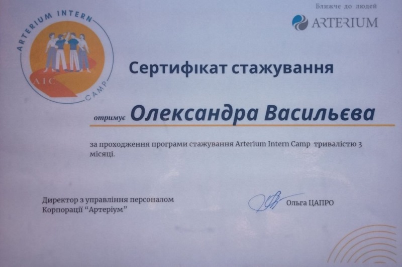 Найуспішніші стажери, і серед них наша здобувачка, отримали сертифікати, які засвідчують пройдений навчальний курс.