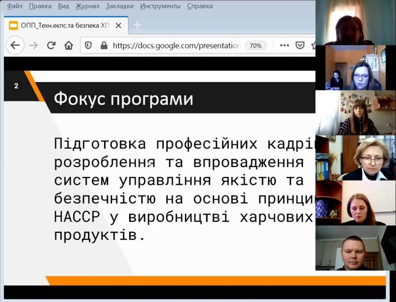 Зустріч була присвячена обговоренню двох освітніх програм зі спільною назвою «Технологічна експертиза безпека харчової продукції», зокрема питанням основних освітніх компонент і на що варто звернути увагу при вивченні окремих дисциплін.