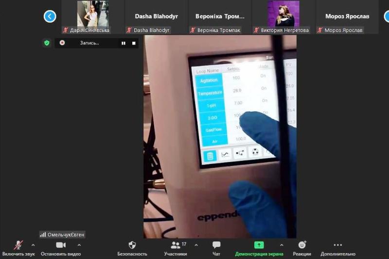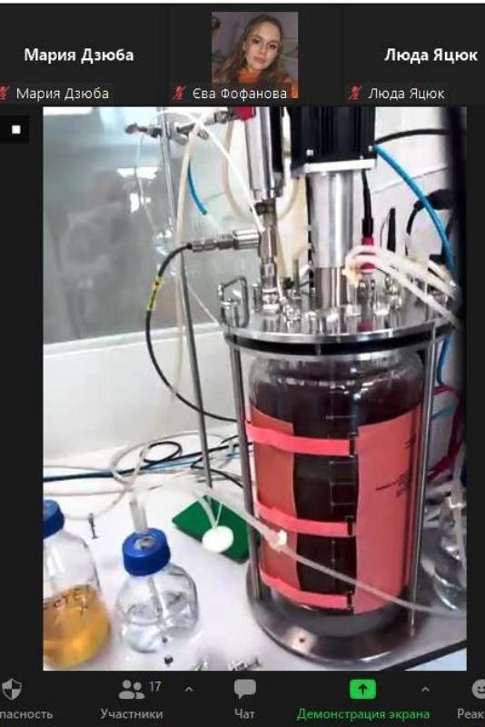 Особливо цікаво здобувачам було почути про лабораторію, яка складається з трьох робочих груп, оскільки саме від забезпечення її компетентності залежить виробництво якісної та конкурентоспроможної продукції. Лабораторія Interstarch Ukraine оснащена найсучаснішим устаткуванням, приладами і високоточними засобами вимірювальної техніки, частину яких студенти змогли наочно побачити завдяки практичній онлайн-екскурсії. Зокрема, вони побачили роботу шейкера-інкубатора, термостату, прохідного автоклаву, боксу біологічної безпеки з ламінарним потоком повітря і найголовнішого елементу будь-якого біотехнологічного виробництва – ферментера Eppendorf фірми BioFlo на 14 літрів.