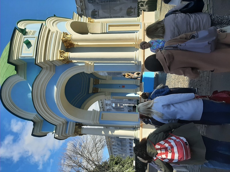 Наталія познайомила екскурсантів із визначними місцями, унікальними архітектурними спорудами, що становлять історичну та культурну цінність Подолу – Контрактовим домом, Києво-Могилянською Академією, фонтаном «Самсон», церквою Успіння Богородиці Пирогощі, музеєм-аптекою, Свято-Вознесенським Флорівським монастирем.