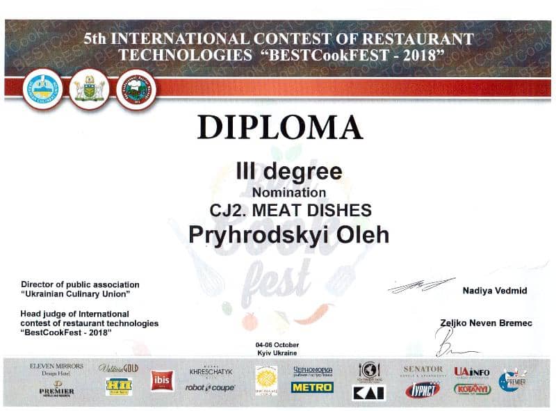 Студент факультету готельно-ресторанного та туристичного бізнесу спеціальності 181 «Харчові технології» Олег Пригродський брав участь в індивідуальних змаганнях в категорії CJ (юніори) у номінаціях «М’ясні страви» і «Страви аутентичної та національної кухні». Завдання було впродовж 45 хвилин приготувати і сервірувати страву на дві порції, окремо для кожної персони. Допомагали Олегу під час 2-х днів змагань його одногрупники, студенти 1 курсу зі скороченим терміном навчання Уляна Блиндюк і Максим Кортовський.
