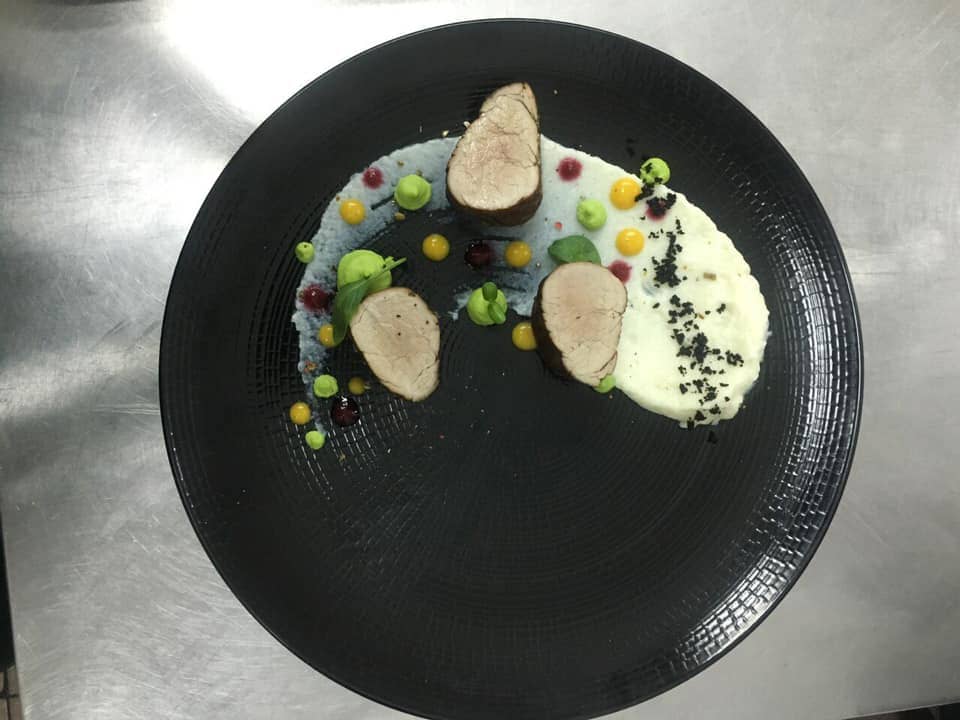 Першого дня змагань наш студент готував копчену телятину з пюре з цвітної капусти. Вирізку обсмажив із чебрецем і підкоптив із використанням щепи абрикосового дерева. Цей креативний підхід відзначило журі конкурсу, а також смакове поєднання пюре зеленого горошку і трюфельної олії, ніжний смак пюре цвітної капусти, припущеної у молоці та оригінальність редису, припущеного у червоному сухому вині. За органолептичними показниками компетентне міжнародне журі поставило максимальну кількість балів, і в загальному заліку це дозволило здобути ІІІ місце у номінації «М’ясні страви».