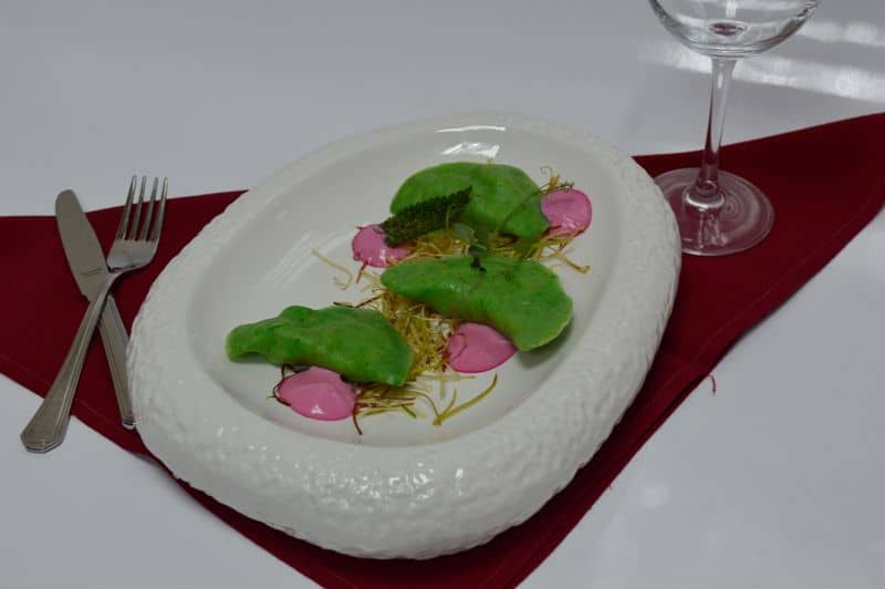 Другого дня Олег готував національну страву вареники, але у сучасній інтерпретації – із зеленого шпинатного тіста, з гуцульським крафтовим сиром (копченим будзом) і лисичками, а в оформлені використав дегідратовану цибулю-порей, мікрозелень і соус зі сметани з додаванням бурякового соку. Журі відзначило своєрідний і оригінальний смак начинки вареників, а естетичний фуд-шедевр із локальних продуктів здобув срібло (ІІ місце) у номінації «Страви аутентичної та національної кухні».