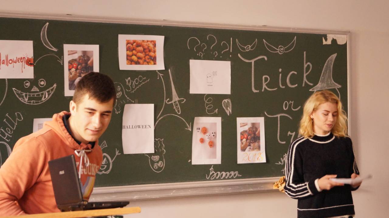 31 жовтня святкується одне з наймістичніших свят у світі – Halloween. Воно бере початок із вірувань стародавніх кельтів, які проживали на території сучасної Ірландії та Шотландії. Свято набуло неабиякої популярності серед сучасної молоді США та Великобританії. Наслідуючи традиції англомовних країн, викладач кафедри ділової іноземної мови та міжнародної комунікації Наталія Божок разом із американським гостем Stuart Snuggs провели зі студентами 1 курсу Навчально-наукового інституту економіки і управління захід, присвячений цьому цікавому, таємничому святові зі своїми унікальними традиціями та символікою.