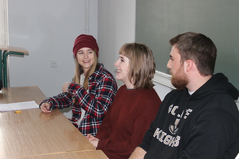 Іноземні гості відвідали уроки іноземної мови, де за їх участю відбулися круглі столи “Presenting a product”, “Marketing strategies in Ukraine and in the USA”, “Money”, “Food”, “Presentations” та іншi. Окрім зазначених тем, американські та українські студенти обговорювали університетське життя, щиро ділились планами на майбутнє та кумедними історіями зі своїх навчальних буднів.