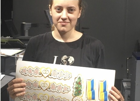 У статті в тому числі ідеться про дизайни кольореток для пляшок зі шампанським вином, які розробила Євгенія. Сучасна етикетка крім своєї основної функції може ще й залучати споживача до створення унікальної подарункової упаковки для святкових подій. Кольоретка з патріотичною, весільною або новорічною тематикою, яку споживач може самостійно наклеїти, здатна надати продукту або напою у звичайному пакованні унікального вигляду, креативності та декоративності, а споживачу подарувати незабутні емоції залученості до процесу створення подарунку.