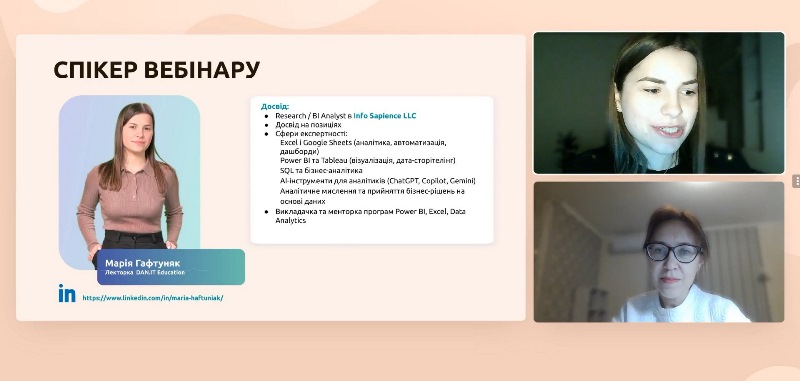 Разом зі спікеркою, досвідченою аналіткинею та дослідницею з практичним бізнес-досвідом, викладачкою курсів із аналітики даних і Business Intelligence Марією Гафтуняк слухачі розглянули функціональні можливості розумних таблиць, особливості їх створення та форматування, використання зрізів, а також інструменти формування підсумків і виконання розрахунків.