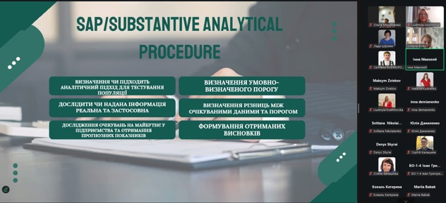Доповідачі приділили особливу увагу важливості проведення субстантивних процедур для перевірки достовірності облікових даних, а також ролі цифрових технологій у фінансовій діяльності, які забезпечують підвищення ефективності, безпеки та доступності фінансових послуг.