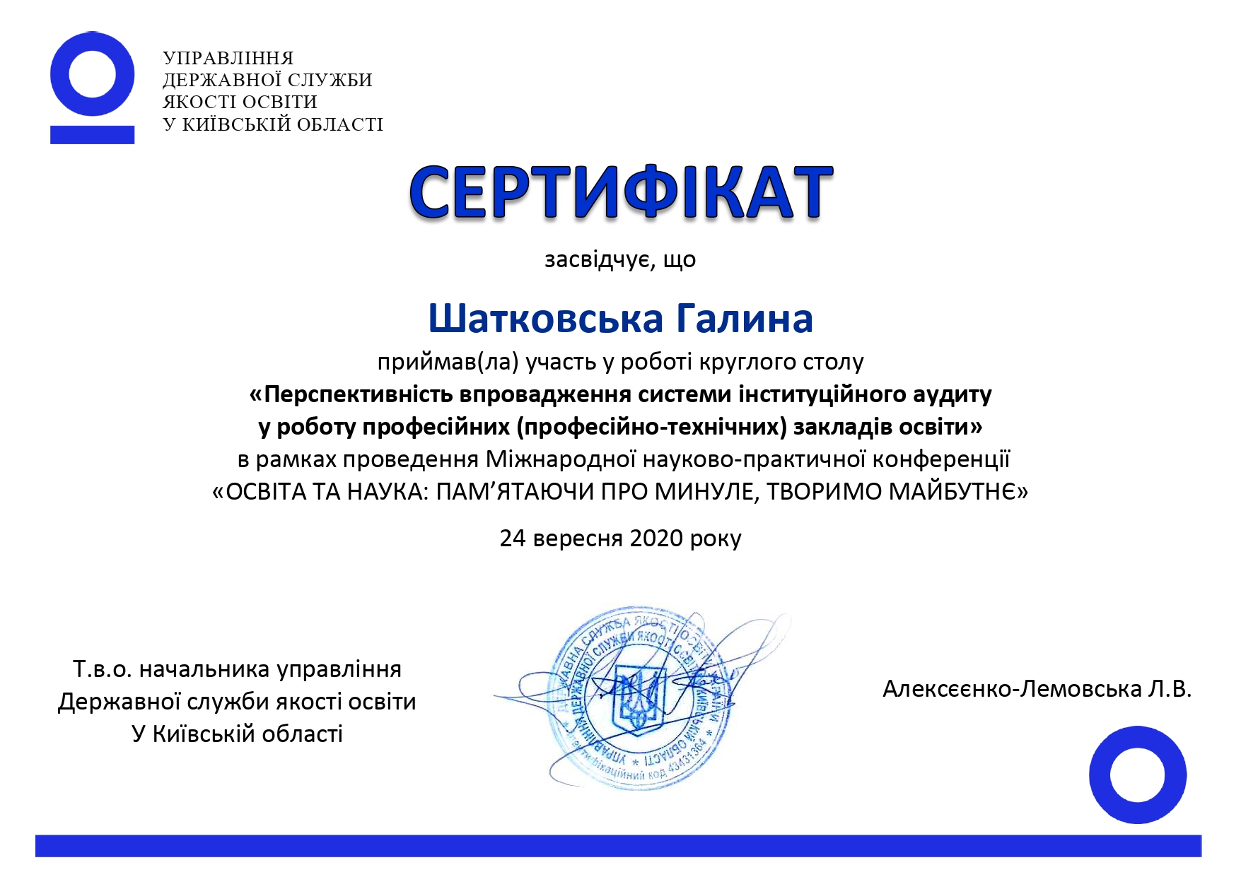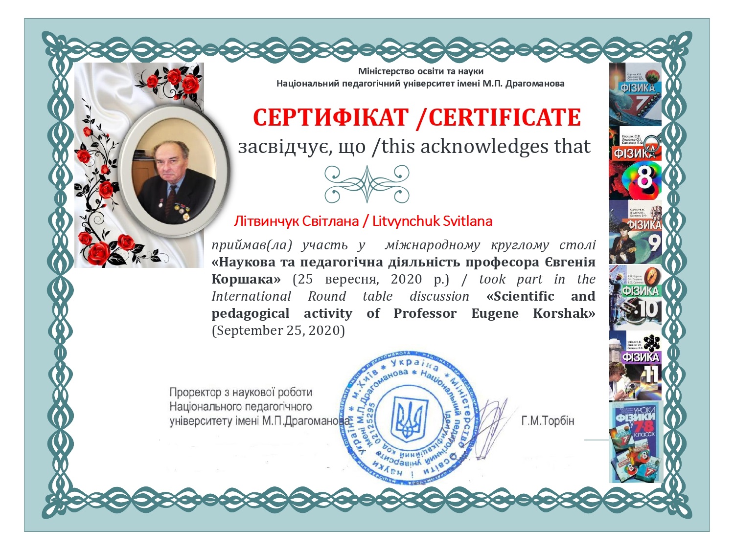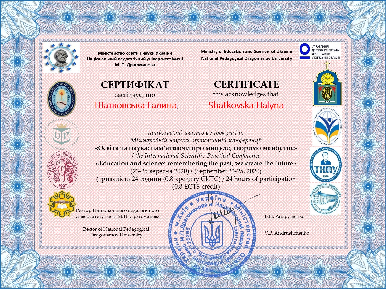 За результатами Міжнародної науково-практичної конференції «ОСВІТА та НАУКА: пам’ятаючи про минуле, творимо майбутнє» завідувачка кафедри фізики Світлана Літвинчук і доцента Галина Шатковська отримали іменні сертифікати учасників.