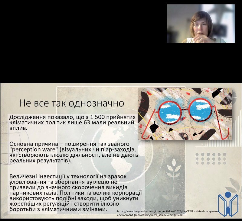 Слухачі лекції висловили велике зацікавлення темою, обговорюючи можливі шляхи інтеграції принципів сталого розвитку в різні моделі управління. У ході дискусії були наведені конкретні приклади з практики, що продемонстрували вплив різних політичних режимів на реалізацію екологічних і соціальних ініціатив. Наприкінці Любов Жарова наголосила на важливості критичного мислення та активної участі кожного в процесах глобальних змін.