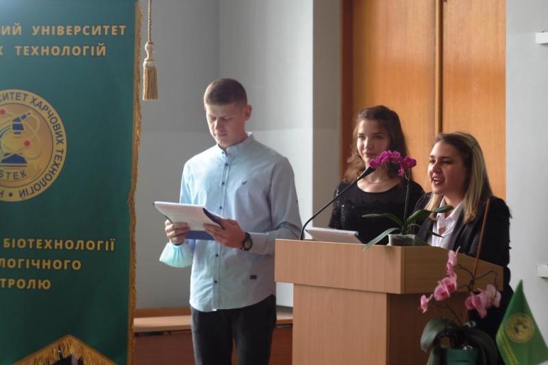 Під час урочистої частини посвяти до привітального слова долучилися: деканка факультету Наталія Грегірчак, яка привітала першачків із початком дорослого життя та розповіла про особливості навчання в університеті та факультеті; завідувачка кафедри екологічної безпеки та охорони праці Олена Cеменова, яка ознайомила першокурсників із обраною професією та описала її особливості; доцентка кафедри біотехнології і мікробіології Вікторія Красінько, яка дала корисні поради, що допоможуть заглибитись у професію та зацікавитися світом мікроорганізмів; голова студентської ради факультету Елизавета Дон, яка представила свою команду, а також ознайомила студентів із можливостями самореалізації та саморозвитку.