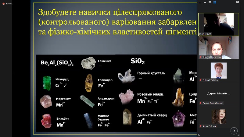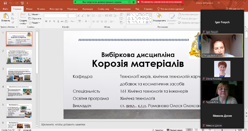 Викладачами були представлені на вибір 11 дисциплін, серед яких дев’ять фахових: «Харчова хімія» (доцент Олександр Макаренко), «САПР» та «ОКГ» (доцент Микола Десик), «Енерготехнологія хіміко-технологічних процесів» (доцентка Наталія Іващенко), «Хімія та технологія пігментів» (доцент Ігор Фесич), «Хімія ПАР» та «Хімічні методи аналізу харчових добавок та косметичних засобів» (доцентка Галина Біла), «Корозія матеріалів» і «Конструкційні матеріали та засоби захисту від корозії» (старша викладачка Олеся Романова), що спрямовані на формування професійних навичок «Hardskills». Дві дисципліни гуманітарного спрямування – «Культура професійного мовлення» та «Етика ділової комунікації», які представила доцента кафедри гуманітарних дисциплін Людмила Приблуда, сприятимуть формуванню у здобувачів навичок «Softskills» у професійній сфері, що дозволяє швидко адаптуватися до нових умов, змінювати сферу зайнятості та вирішувати нестандартні завдання.