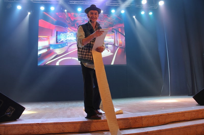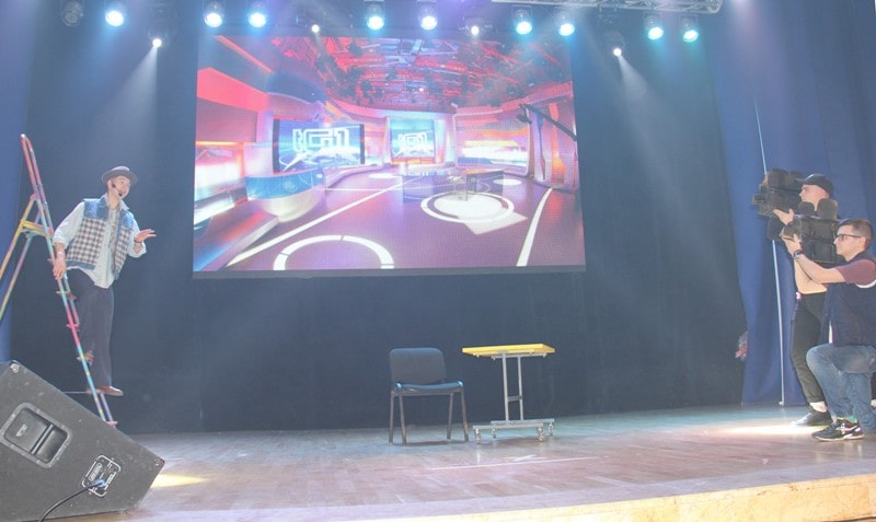Гості заходу побували не аби десь, а за лаштунками НУХТ-ТБ, яке перевіряла сувора й прискіплива ревізорка на предмет готовності до святкування. Вона скрізь побувала – і у студії новин, і у студії спорту, і у студії погоди. Все добре роздивилася, про усе розпитала, за усім поспостерігала. До чого тільки не вдавався нещасний режисер НУХТ-ТБ Назар – і ведучим-ою новин особисто виступив, і спортивним коментатором. Немало допомогли йому згладити гострі кути дві віддані справі помічниці, вони, як могли, відволікали увагу ревізорки, і навіть примудрилися розлучити її з супроводжуючим. Та зрештою, перевірка скінчилася, ревізорка винесла свій вердикт – до свята все готове! І усі з полегшенням «видихнули».