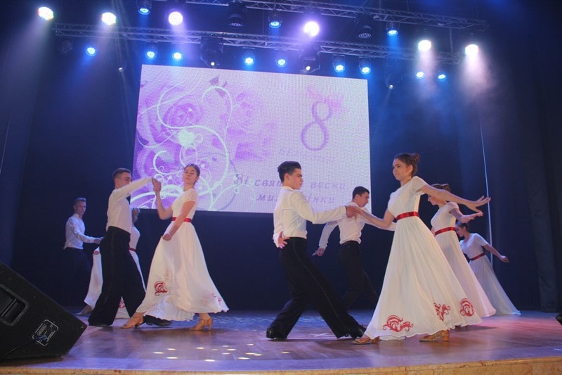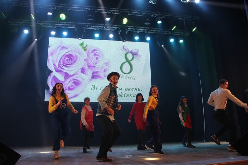 Свої вокальні дарунки прекрасній половині нашого колективу презентували володарі гран-прі й учасники конкурсу української пісні різних років і не тільки – неймовірно талановиті студенти різних курсів усіх навчально-наукових інститутів і факультетів – Анастасія Снєтко, Ольга Ластовецька, Віолетта Резнік, Андрій Середінський, Анастасія Терещук, Ілля Гетьман, Ольга Оленюк, Мирослав Хоньків, Арина Юрковець, Інна Кравченко та інші. А запальні танцювальні композиції подарували колективи факультету готельно-ресторанного та туристичного бізнесу і Навчально-наукового інституту економіки і управління. Невимовно ніжним і проникливим був віденський вальс, що відкрив концертну програму, яскравим доповненням свята став оригінальний номер від ревізорки, а потужним емоційним завершенням – вихід на сцену всіх учасників концертної програми під пісню у виконанні Євгена Амаріци.