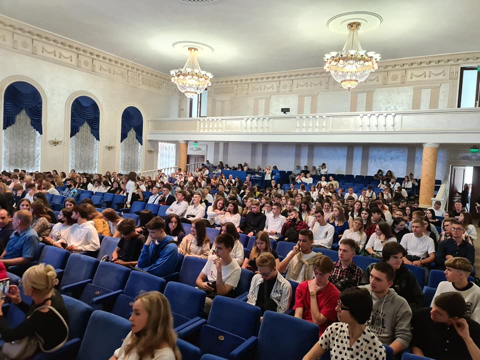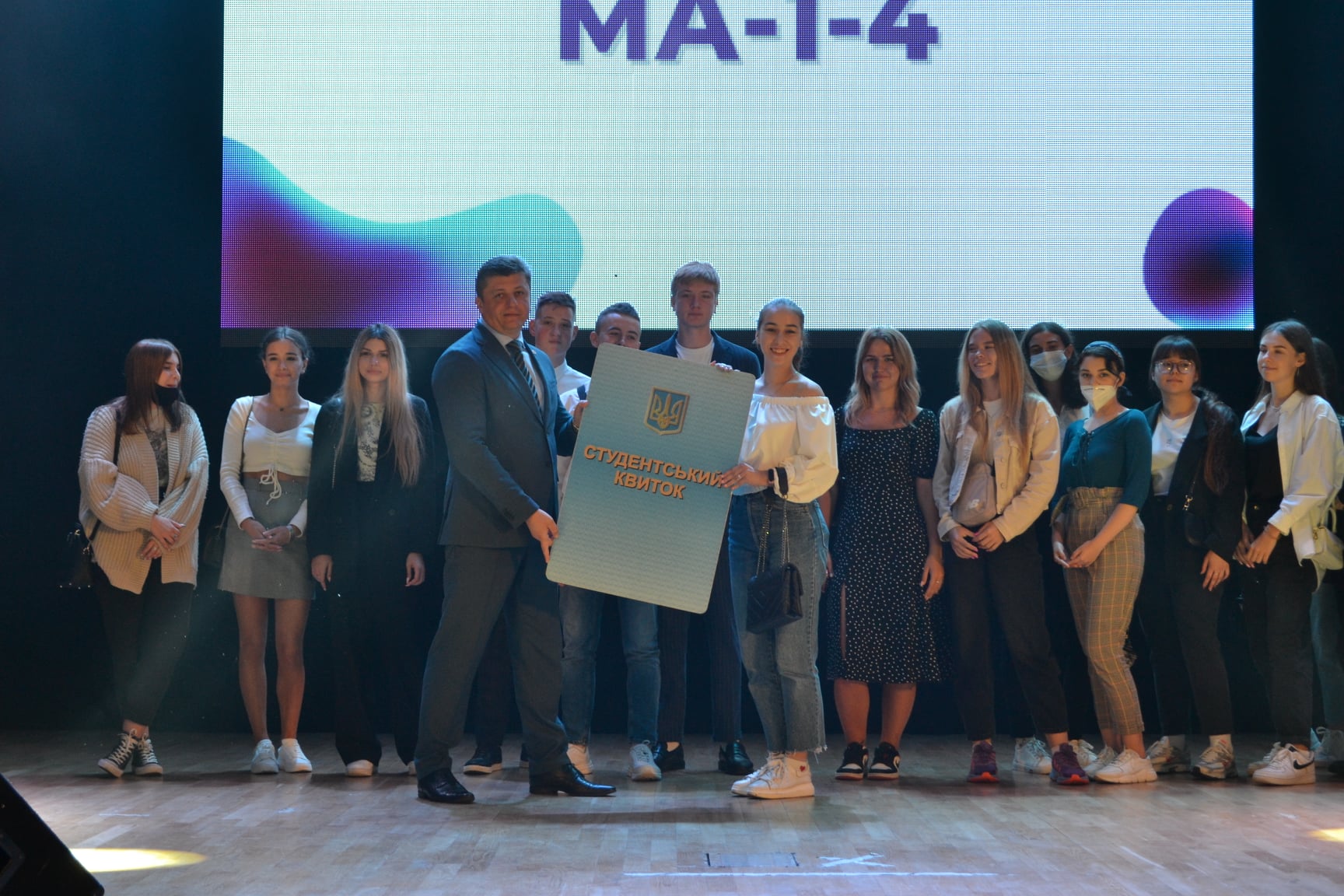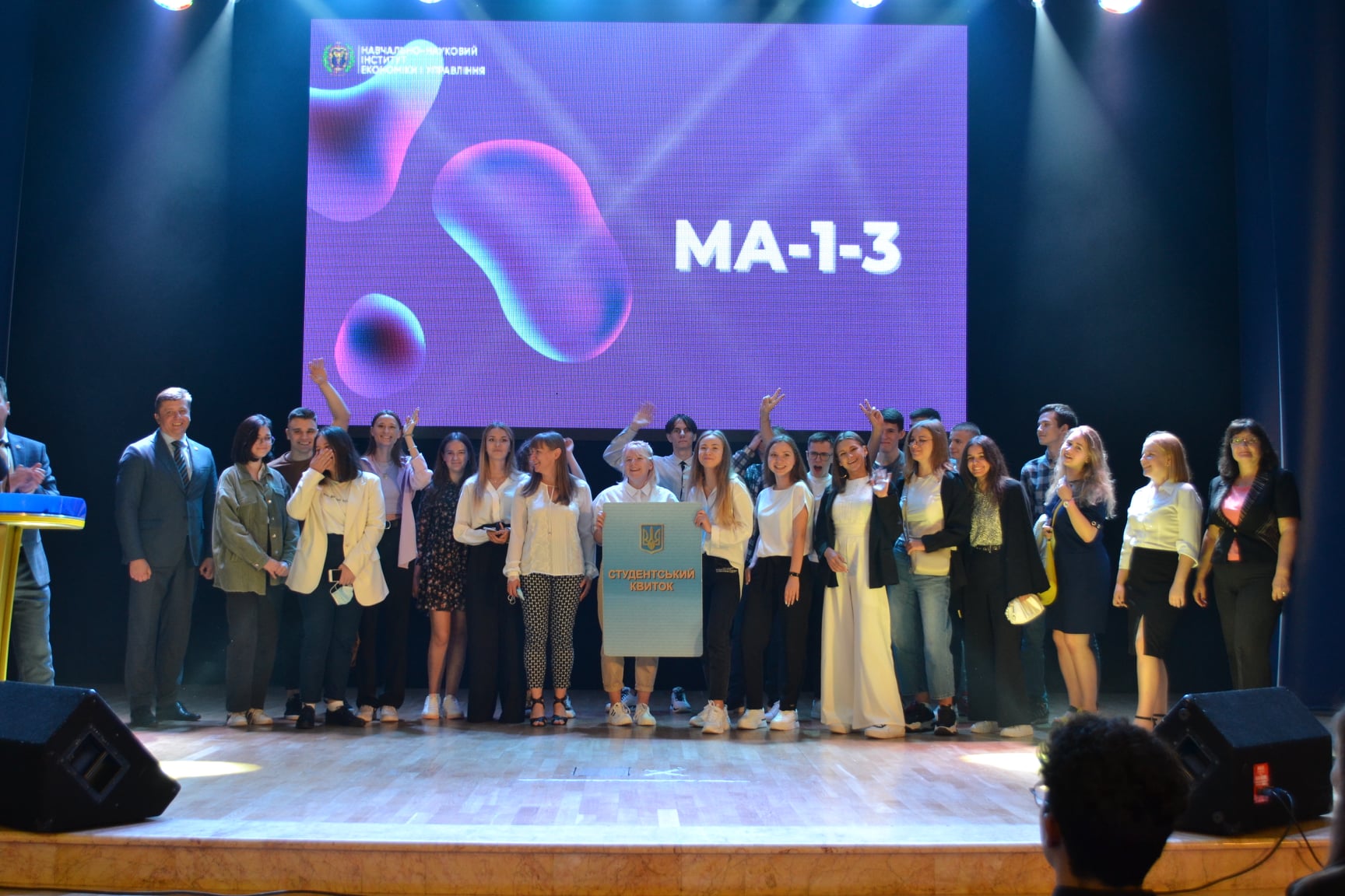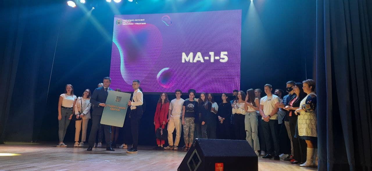 А далі всі новачки отримали можливість піднятися на сцену актової зали університету разом зі своїми групами, познайомитися з кураторами й молодшими кураторами з числа старшокурсників та отримати символічний студентський квиток із рук директора інституту Олега Шеремета.