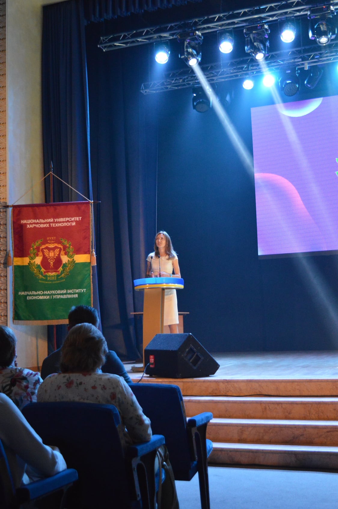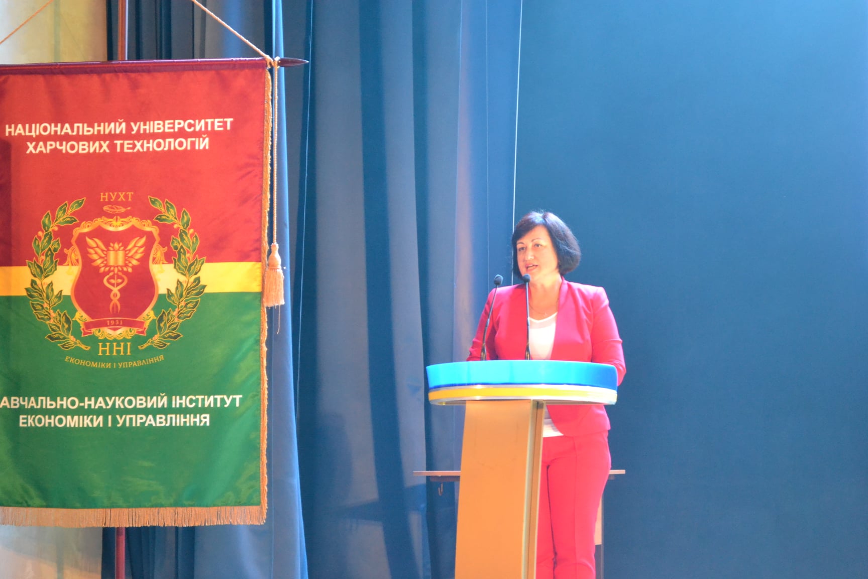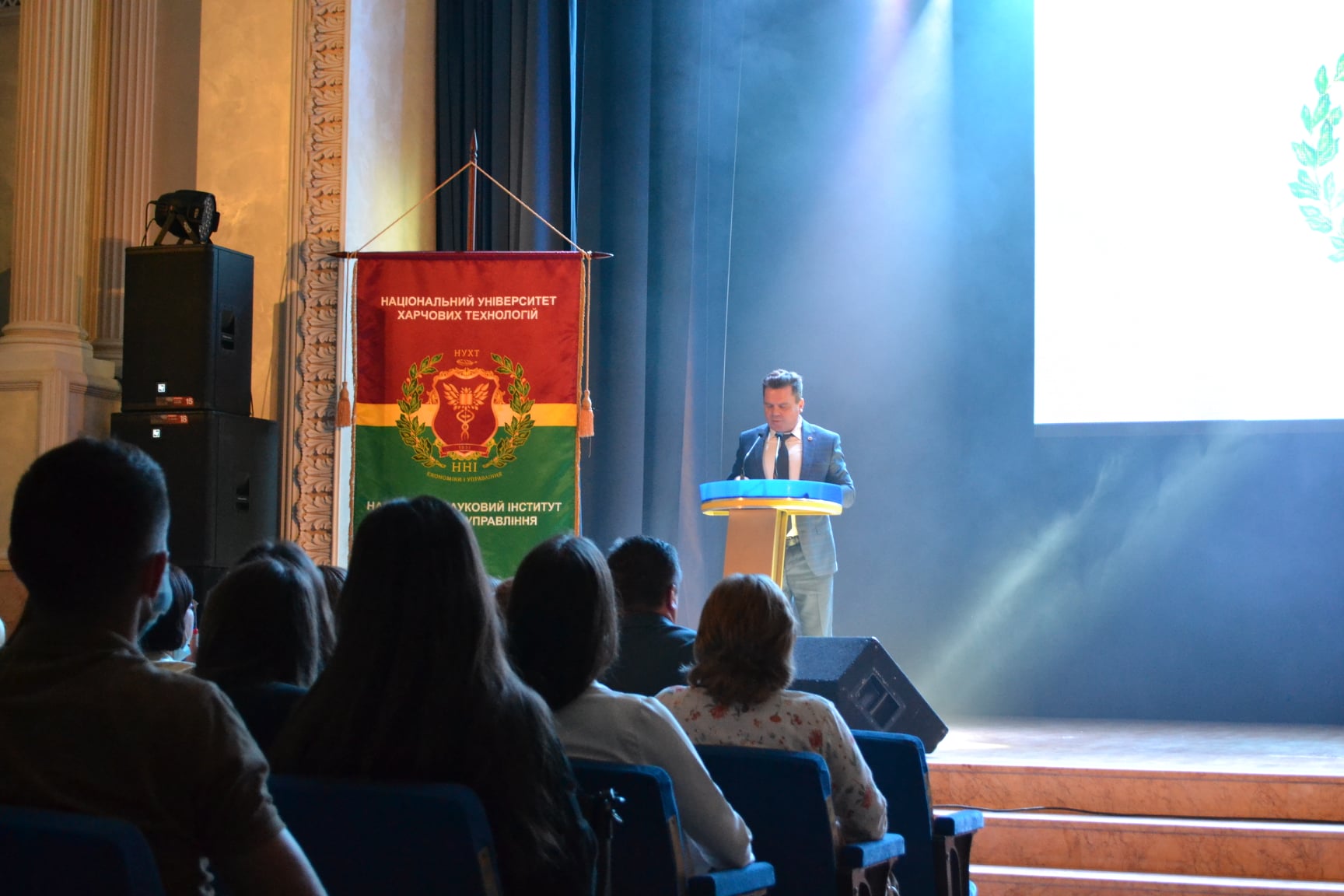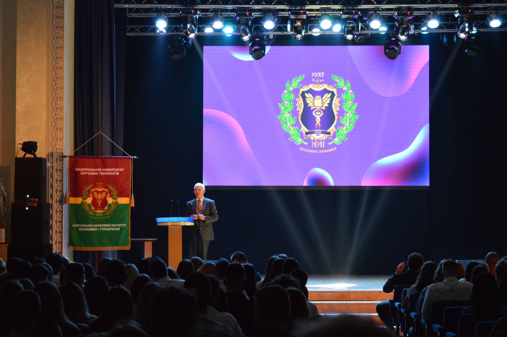 Із теплими напутніми словами й найкращими побажаннями до нового поповнення звернувся директор інституту Олег Шеремет. Він розповів про особливості навчання в НУХТ, структуру та підрозділи інституту й представив завідувачів випускових кафедр і дирекцію.