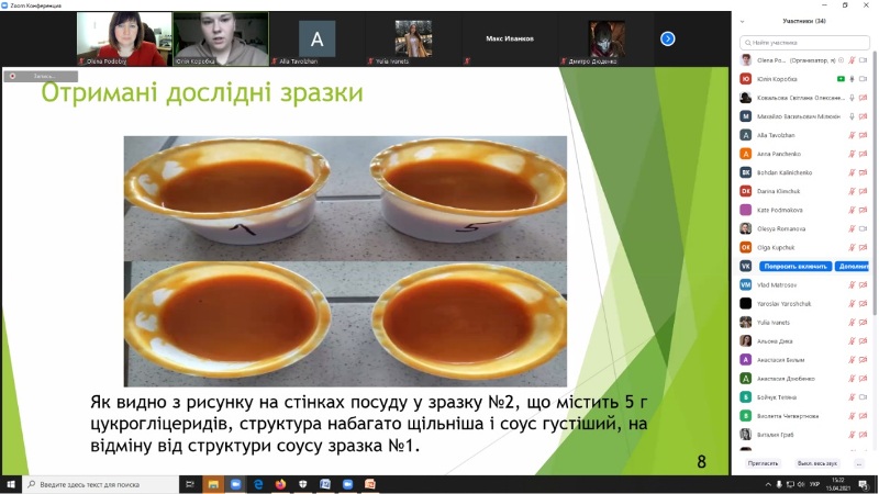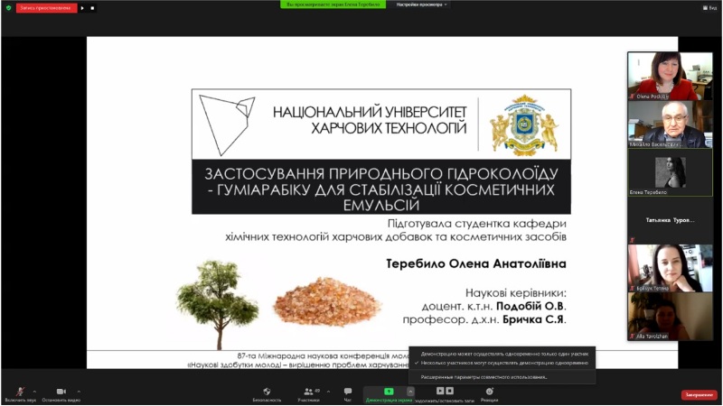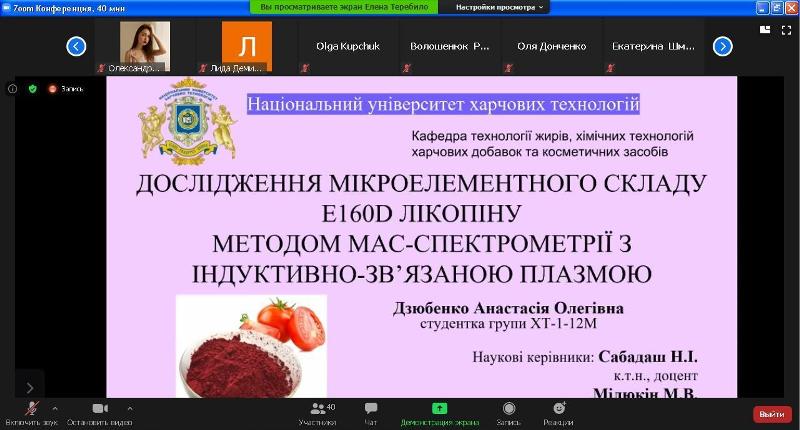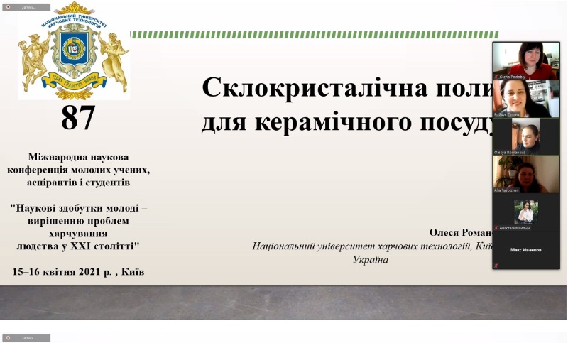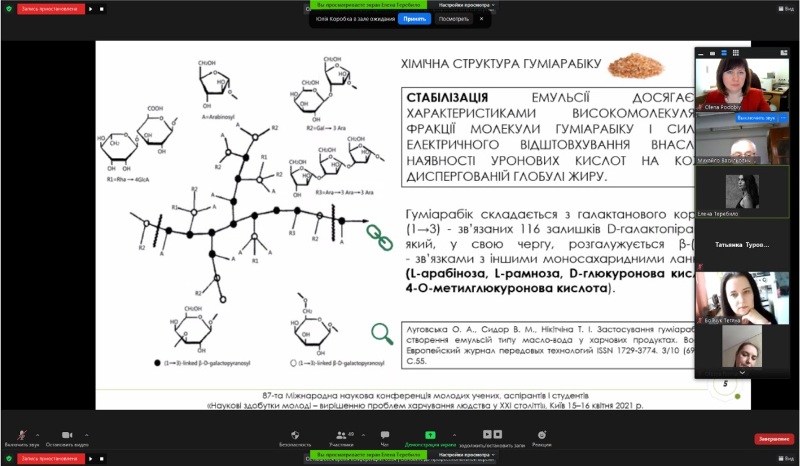 15-16 квітня 2021 року на кафедрі технології жирів, хімічних технологій харчових добавок та косметичних засобів відбулося свято студентської науки – плідно працювала секція «Хімічні технології» 87-ї Міжнародної наукової конференції молодих учених, аспірантів і студентів «Наукові здобутки молоді – вирішенню проблем харчування людства у XXI столітті».