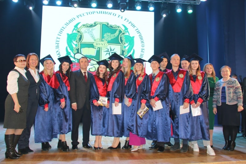 Теплими напутніми словами проводжали своїх вихованців у самостійне фахове життя декан факультету Віктор Доценко, завідувачі кафедр – туристичного та готельного бізнесу Дарія Басюк й іноземних мов професійного спрямування Олена Галинська та заступник завідувача кафедри технології ресторанної і аюрведичної продукції Віра Зуйко. Щиро попрощалися зі старшими товаришами голова студентської ради факультету Віталій Євстаф’єв і заступник голови Вікторія Новікова.