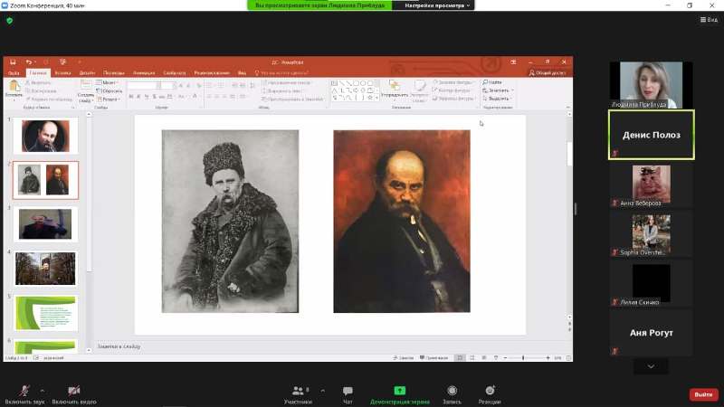 Доцентка Людмила Приблуда зробила віртуальну екскурсію на Чернечу гору, продемонструвавши здобувачам власні фото поїздки з поїздки до Канева.
