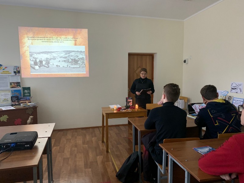 Студенти і викладачі коледжу пригадали сумні сторінки історії Голокосту, коли на території нашої країни в роки Другої світової війни були знищені понад 30 тисяч осіб і поховані в Бабиному Яру.