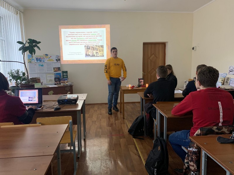 Напередодні к.і.н Людмила Коваленко провела наукову студентську конференцію «Уроки Голокосту». Доповідачі поділилися дослідженим ними матеріалом у групах студентів першого курсу.