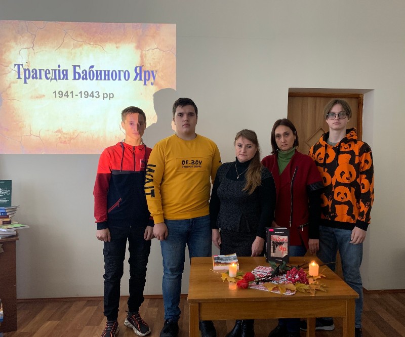 Зворушливий, глибоко змістовний захід «Голокост від куль» підготували працівники бібліотеки Алла Паутова та Лариса Скиба. Емоційну розповідь Алли Паутової супроводжувала цікава презентація, тематичні вірші і пісні. На заході був презентований роман-документ Анатолія Кузнєцова «Бабин Яр».