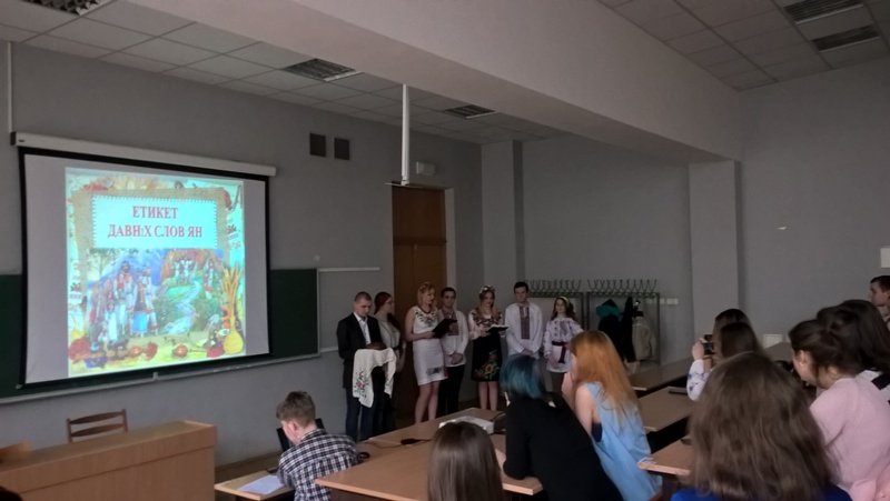 Гості заходу, серед яких представники дирекції Навчально-наукового інституту харчових технологій та викладачі кафедри, із задоволенням дізналися, що з часів Стародавнього Риму прийшов до нас звичай гостинності, безшумно їсти і правильно поводитися зі столовими приборами вміли ще стародавні єгиптяни, а в часи середньовіччя ознакою вихованості вважали те, що кавалери сідали за обідній стіл поруч із своїми дамами. Група ТХ-3-16ск розповіла про звичаї давніх слов’ян, вбравшись у національні українські костюми, а доповідачі групи ТХ-3-4 нагадали студентам про правила поведінки в сучасному повсякденному житті, в тому числі під час навчання в університеті.