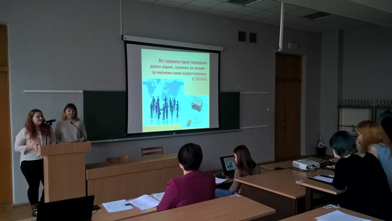 Традиційно кожного року навесні наставники кафедри технології хлібопекарських і кондитерських виробів разом зі студентами 1-3 курсів Навчально-наукового інституту харчових технологій проводять тематичні заходи. Цього року темою зустрічі став «Його Величність Етикет». Студенти підготували захоплюючі доповіді про формування правил поведінки та звичаїв від давнини до сьогодення: «Етикет давніх слов’ян» (ТХ-3-16ск), «Етикет давніх єгиптян» (ТІ-1-2), «Етикет давніх римлян» (ТХ-3-5), «Етикет Середньовіччя» (ТІ-2-6) та «Сучасний Етикет» (ТХ-3-4).