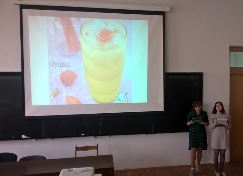 Сьогодні важко уявити сніданок сучасної людини без кави або чаю. Про різноманіття цих напоїв та історію їх походження розповіли представники групи ТХ-3-5 і ТХ-3-4. Про традиційні напої слов’ян – квас, узвар і збитень гості заходу дізналися від доповідачів групи ТХ-3-16ск. Не менше цікавими є безалкогольні напої Західної Європи, традиції споживання яких розкрили наймолодші учасники – група ТІ-1-2. А про екзотичні напої Південної та Північної Америки і Азії на основі соків тропічних фруктів і прянощів розповіли доповідачі групи ТІ-2-6.