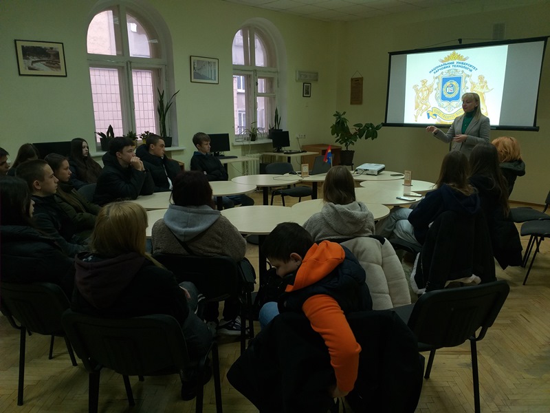 Спочатку учасники заходу зібралися за круглим столом у залі Науково-технічної бібліотеки університету, де Оксана Кочубей-Литвиненко презентувала всі структурні підрозділи НУХТ та ознайомила з вимогами щодо вступу до нашого закладу освіти.