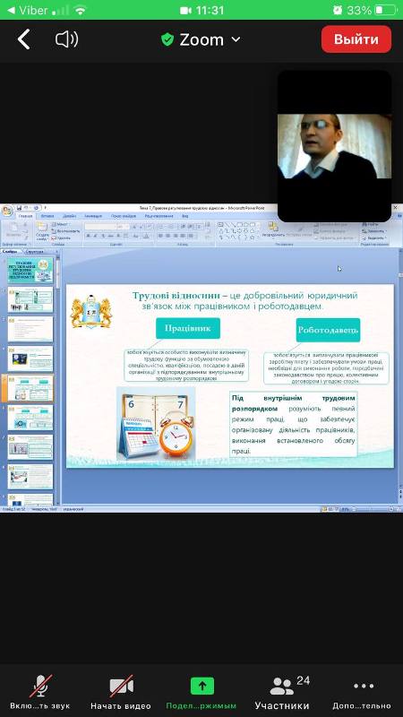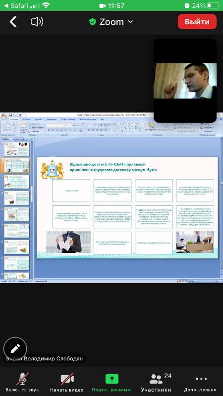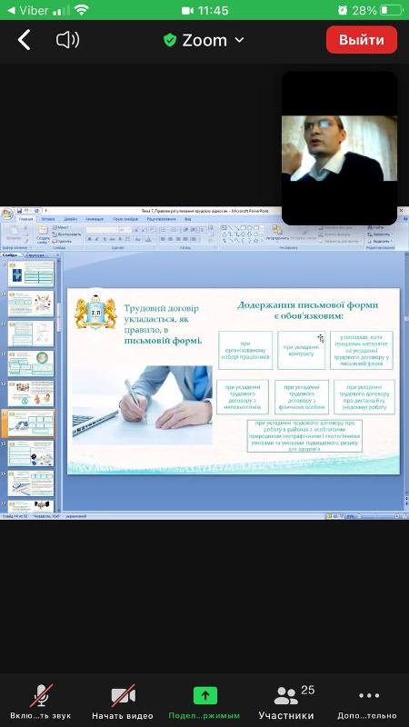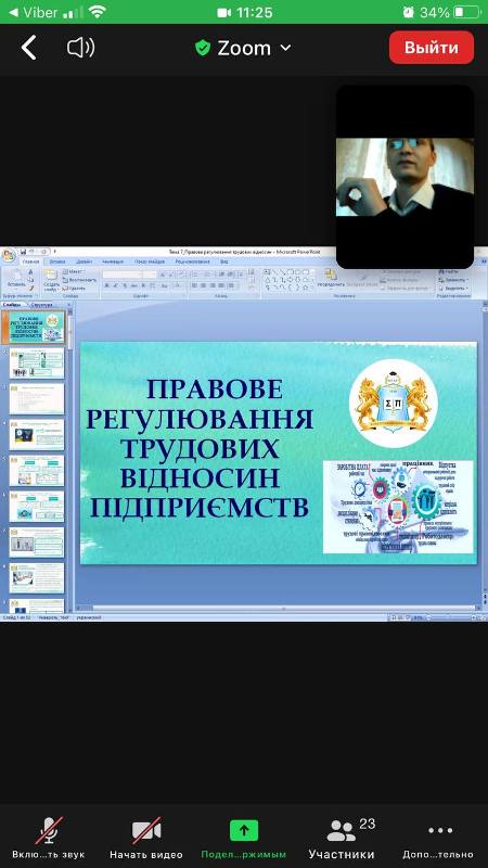 Доцент Володимир Слободян разом із здобувачами 2 курсу спеціальності 051 «Економіка», освітньо-професійної програми «Економіка підприємства» розглянув актуальні питання в межах теми лекції «Правове регулювання трудових відносин підприємства». Теоретичні основи було доповнено оновленнями у трудовому законодавстві тимчасового характеру і не лише, спричиненими воєнним станом, що є своєчасно і цікаво для обговорення.