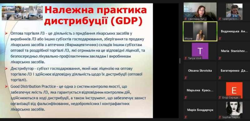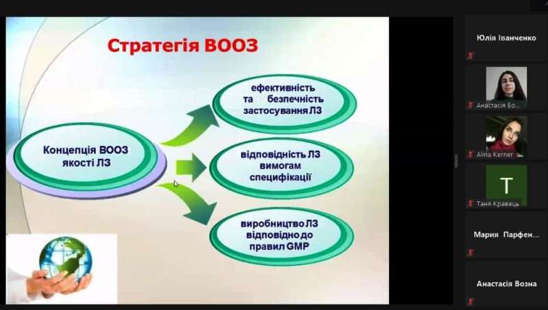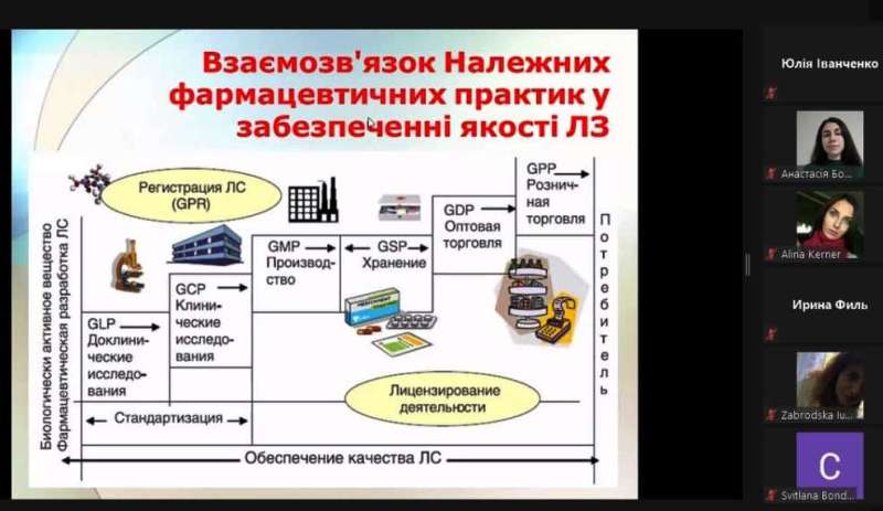 Лекторка доступно розповіла про особливості концепції державного забезпечення якості лікарських засобів, наголосивши на важливості взаємозв’язку Належних фармацевтичних практик у питанні забезпечення ліків. У ході лекції була розглянута стратегія ВООЗ щодо забезпечення якості лікарських засобів, а також висвітлені особливості та функціонування галузевих стандартів серії GxP, яких в обов’язковому порядку дотримуються виробники ліків. Крім того, фахівчиня наголосила на важливості проведення доклінічних і клінічних досліджень лікарських препаратів, оскільки без їх позитивних результатів подальше виробництво ліків неможливе, разом із тим лекторка зазначила, що правила Належної виробничої практики (GMP) призначені в першу чергу для зниження ризику, який може виникати при виробництві фармацевтичної продукції – такий підхід до забезпечення якості ліків є значно ефективнішим, порівняно з кінцевою перевіркою вже готової продукції. Також гостя розповіла про особливості функціонування Належної практики дистрибуції (GDP) і Належної аптечної практики (GPP), оскільки аспекти торгівлі та відпуску лікарських препаратів потребують не менш чіткого регулювання, ніж виробничі.