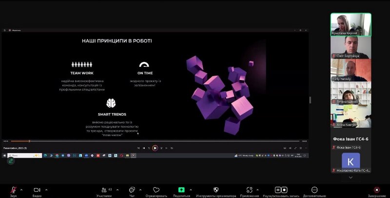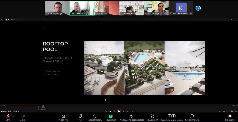 Цього разу четвертокурсники спеціальності 241 «Готельно-ресторанна справа» в рамках вивчення дисципліни «Проєктування та дизайн підприємств готельного та ресторанного господарства» слухали лекцію від співзасновниці студії архітектури та дизайну OURSTUDIO Кристини Кирсей і провідного архітектора Юрія Ярового, яких до освітнього онлайн-простору запросив лектор дисципліни, доцент, к.т.н. Олег Бортнічук.