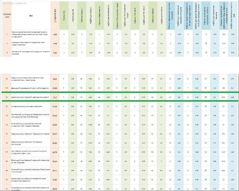 За підсумками сімнадцятого академічного рейтингу закладів вищої освіти «Топ-200 Україна 2023» наш університет посідає 31 місце з 200 представлених у рейтингу закладів вищої освіти з індексом ЗВО 23,3.