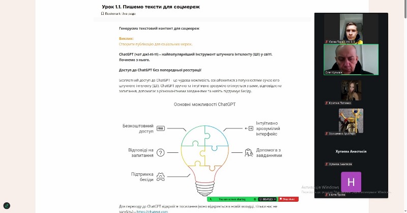 Окрім цього, здобувачі освіти долучилися до сертифікатного курсу «Штучний інтелект у бізнесі: як ШІ може збільшити прибуток», спрямованого на ознайомлення з можливостями застосування інструментів штучного інтелекту у бізнес-процесах, аналітиці та прийнятті управлінських рішень.