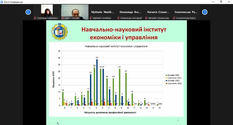 Аналіз результатів вибору здобувачами вищої освіти дисциплін вільного вибору зробила начальниця навчального відділу Тетяна Янюк. Вона зазначила, що вибір дисциплін здійснювався відповідно до наказів ректора з використанням автоматизованої інформаційної системи університету «ПС-Деканат». Здобувачі мали можливість обирати дисципліни з різних каталогів і переліків: загальноуніверситетського каталогу вибіркових дисциплін, який включає 28 дисциплін для освітнього ступеня «Бакалавр», 10 дисциплін для освітнього ступеня «Магістр» і 8 дисциплін для освітньо-наукового ступеня «Доктор філософії»; загальноінститутських/факультетських і каталогів галузі знань або спеціальності, а також із переліків і блоків вибіркових дисциплін освітньої програми.