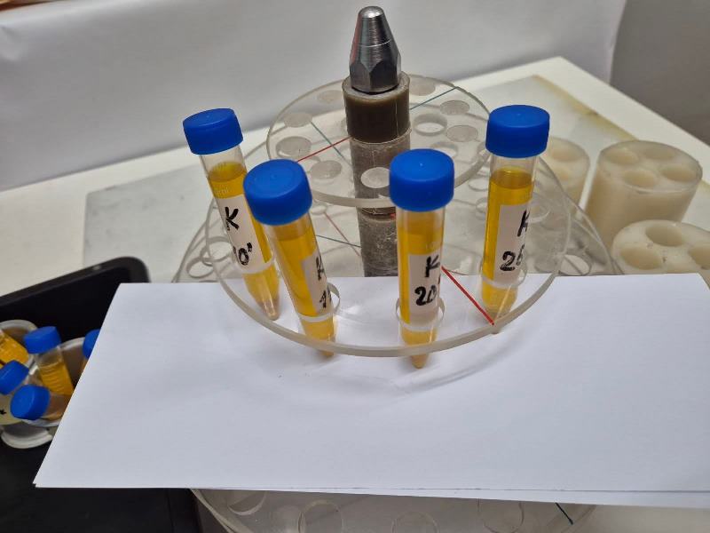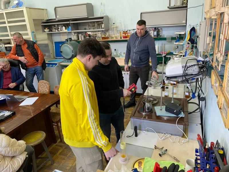 На завершення заняття Сергій практично провів процес гідратації соєвої екстракційної олії та видалення отриманого фосфоліпідного осаду на лабораторній відцентровій центрифузі, надаючи вичерпні відповіді на запитання студентів.