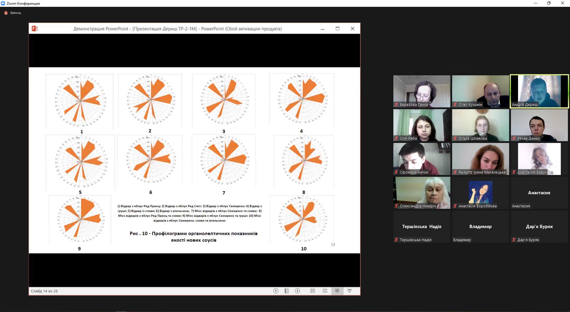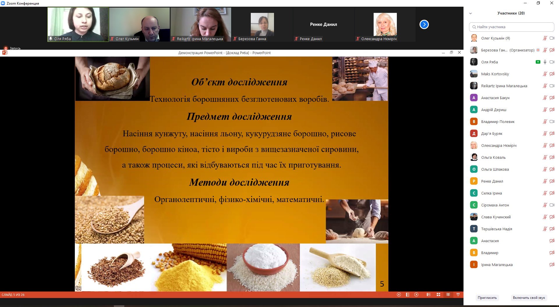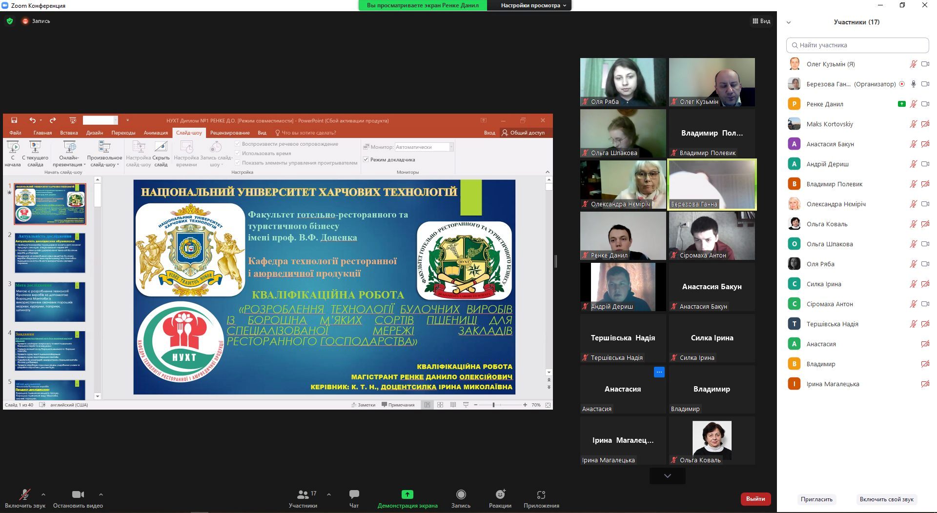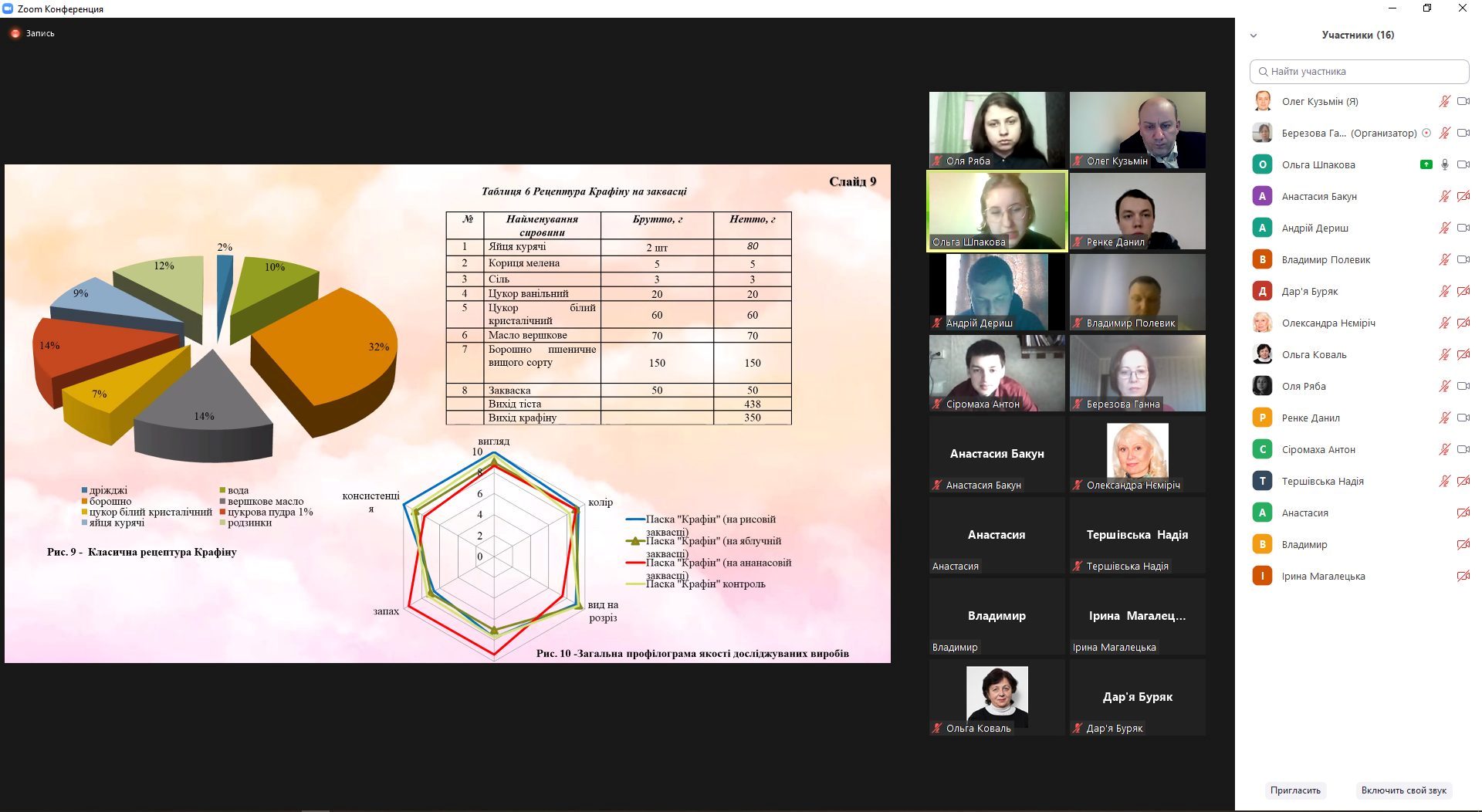 22 лютого 2022 року на кафедрі технології ресторанної і аюрведичної продукції продовжилися захисти кваліфікаційних робіт здобувачів освітнього ступеня «Магістр» за спеціальністю 181 «Харчові технології», освітньо-професійною програмою «Технології в ресторанному господарстві» денної форми навчання.