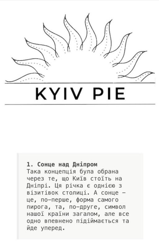 Kyiv pie – це невеликий пиріг круглої форми на бездріжджовому тісті з різними начинками (овочевий, рибний та з яловичим лівером), який об’єднує українські традиції та сучасні тренди. Київський пиріг – це оновлений елемент гастрономічної кухні Києва, створений із метою популяризації гастрономічного туризму у столиці України.