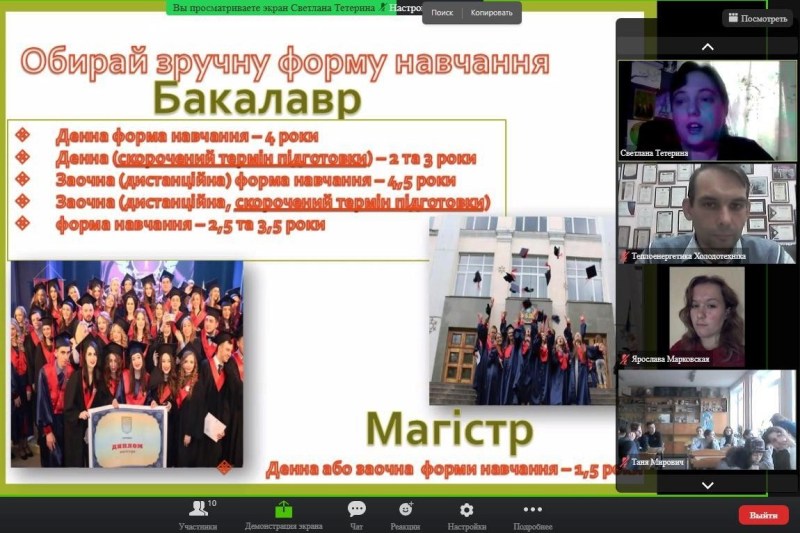 Учні потрапили на справжні віртуальні екскурсії лабораторіями університету, побували і в актовій залі, і пройшли коридорами крізь ошатний хол до лекційних аудиторій. Кожний виступаючий знайомив із освітніми програмами, за якими готують майбутніх фахівців наші кафедри. Представники факультету БТЕК звернули увагу на переваги опанування представлених спеціальностей саме в нашому університеті.