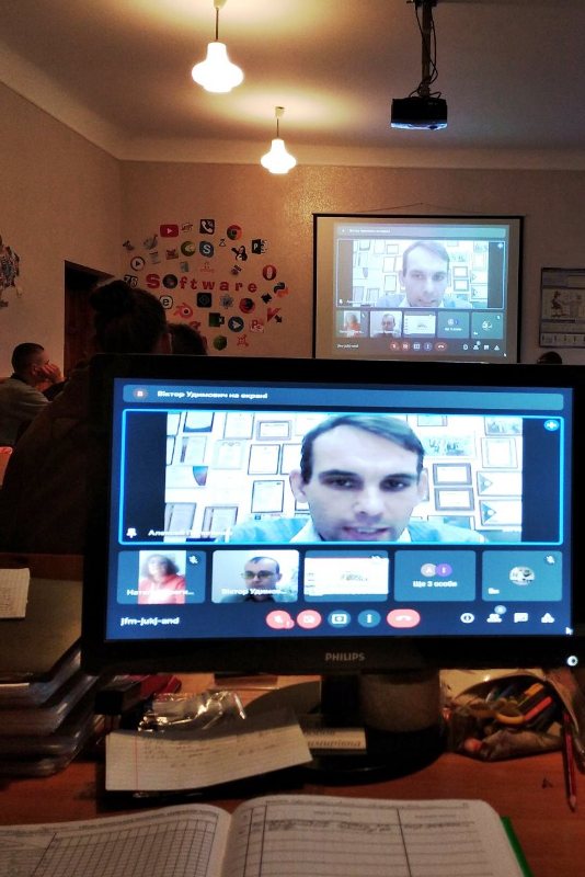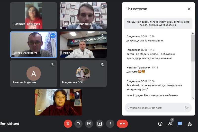 Протягом останнього тижня відбулася серія відеоконференцій з учнями старших класів двох навчальних закладів Гощанської ЗОШ Рівненщини та ліцеїстами 45-го ліцею м. Львова, організованих за сприяння першокурсників, які підтримують зв’язок зі своїми вчителями. Ярослава Марковська за підтримки вчительки біології Тетяни Мирович організувала зустріч із учнями 45-го ліцею м. Львова, а Аліна Федорчук за підтримки директорки школи Алли Талащук допомогла в організації зустрічі зі старшокласниками Гощанської ЗОШ І-ІІІ ступенів. Ще в минулому році дівчата самі були ученицями цих навчальних закладів, тому з радістю допомагали у проведенні зустрічей, а Ярослава й сама долучилась до всіх відеоконференцій зі своїм ліцеєм, а їх було три.