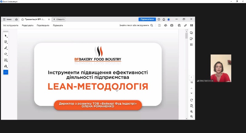 Директорка з розвитку ТОВ «Бейкері Фуд Індастрі» Олена Романенко розкрила для присутніх тему «Інструменти підвищення ефективності діяльності підприємства. LEAN-методологія». Спікерка розповіла про особливості використання Lean-методології як інструмента підвищення прибутку і ефективності бізнесу. Тема викликала інтерес у слухачів, що підтвердив тривалий діалог між спікеркою та аудиторію після завершення доповіді.