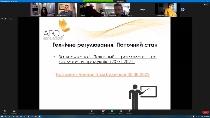 Асоціація «Парфумерія та Косметика України» організувала вебінар тільки для своїх учасників. Тема вебінару – «Технічний регламент на косметичну продукцію».